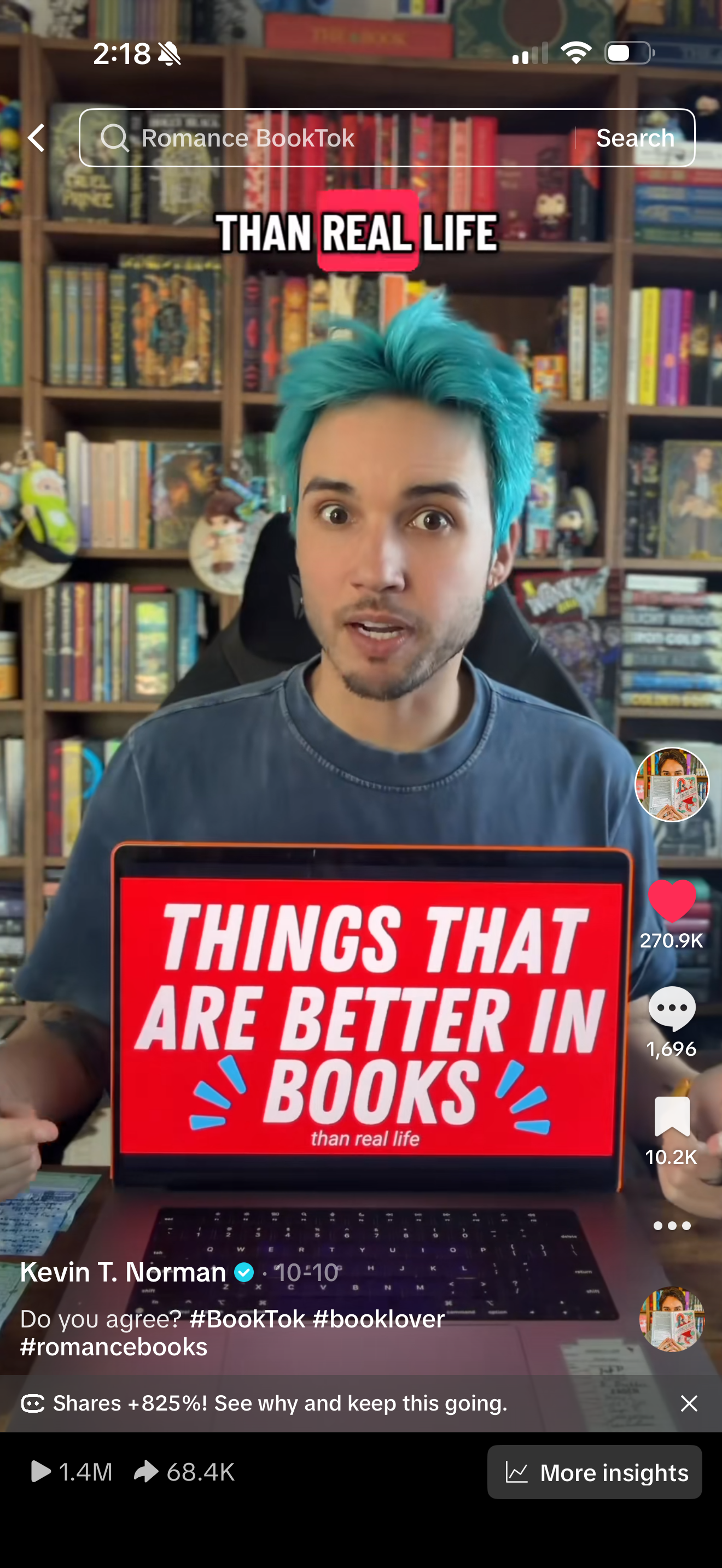 What I mean is this: Create content that you would actually want to watch. Do not just throw out talking points or sound like a robot. When I promote books from my own imprint, I always do it in a way that feels natural. I include them in a recommendation list with other titles, use them as props in my videos, or have them facing out in the background of my content.